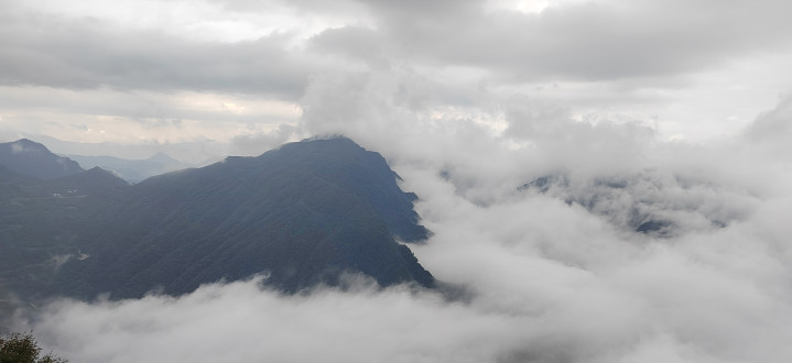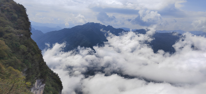 秋日早晨登汉中龙头山,缆车穿云而上的转眼,便坠入了一场流动的瑶池。山坳间的潸潸如刚醒的轻纱,顺着山势缓缓升腾,缓缓铺满整片山谷,将群峰化作云海中的黛色孤岛,若存若一火如蓬莱幻境。