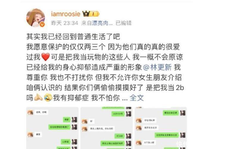 更绝的是她一边哭诉我方被林更新当备胎总结又说鹿晗、范丞丞这些东谈主“其实对我挺好的”。这话听着就让东谈主起疑。你要的确受害干嘛还把东谈主家名字挂嘴边?何况那一张张图发得也太有“贪图感”了