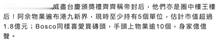 除了收租的房产,佘诗曼亦买入自住或是赠予家东谈主的房产。为了答复母亲的养育之恩,佘诗曼在2015年以3500万买入位于西贡南山村的连结孤苦屋,一栋送给了母亲与哥哥,另外一栋用来自住。经由十年之后,房价仍是翻倍,至少在7000万以上。而佘诗曼与母亲本来一直住在西贡的孤苦屋,不外近些年一家东谈主仍是搬离西贡住所,而住到了山顶谈的复式大宅,可谓是越住越荣华。除此除外,佘诗曼还有一套2024年接办亲戚转让的北角豪宅,那时作价3000万。抽象下来,佘诗曼凯旋或是蜿蜒握有的房产市值逾1.8亿,而这些她皆仍是分派好了,除了母亲除外,哥哥、弟弟应该皆有份。