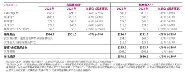 干系词,三款居品如今的商场施展均出现大幅回落,今昔对比之下更显难熬。呋喹替尼2025年国内销售额同比下滑13%至1.001亿好意思元,虽国际商场仍有增长,但国内受医保降价60%、同类竞品纳入集采等影响,毛利率下滑、销量增长乏力,早已不复曩昔翻倍增长的势头;索凡替尼2025年销售额降至2700万好意思元,同比下滑45%。受神经内分泌瘤商场小众、传统疗法及同类药物竞争挤压,上市五年仍未形成限制效应,增速不绝放缓致使掉头下滑;赛沃替尼2025年销售额降至2890万好意思元,同比下滑36%,未能延续上市初期的增长势头。